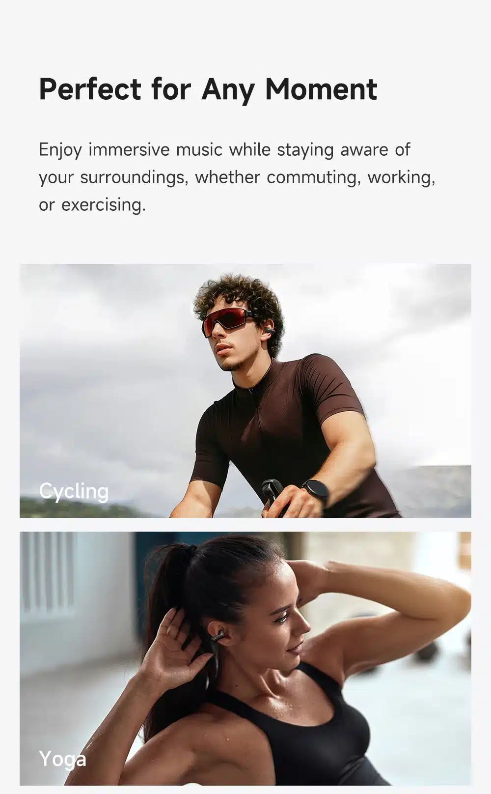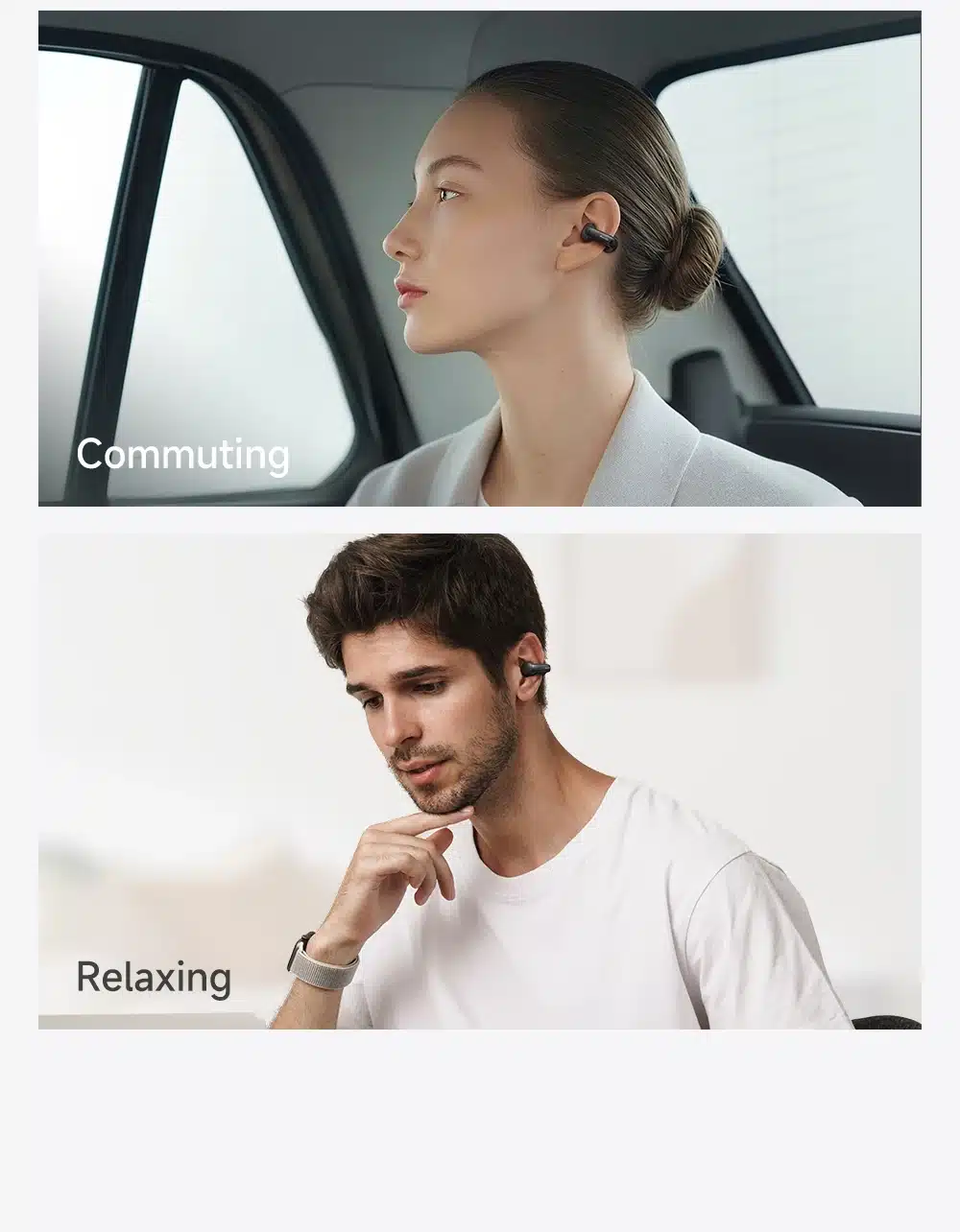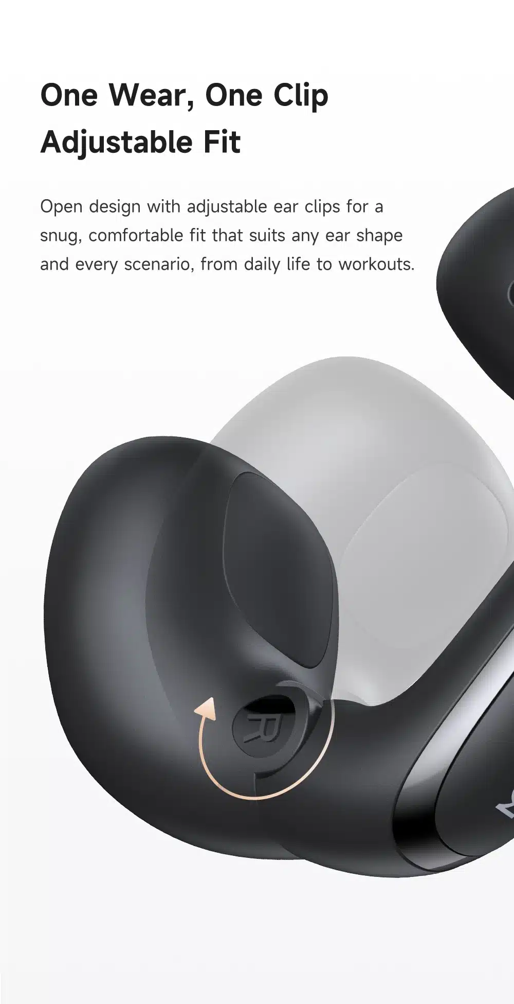 | Características | 1. Design de ouvido aberto com clipes auriculares ajustáveis que se adaptam a diversos formatos de orelha e situações, garantindo segurança e conforto para uso durante todo o dia. 2. A tecnologia de áudio direcional com design de ouvido aberto proporciona chamadas nítidas e som de alta qualidade, mantendo você atento ao seu entorno. 3. O som estéreo oferece áudio equilibrado e espacial para músicas, podcasts e todos os momentos do seu dia a dia. 4. O visor de LED exibe o status da bateria e do carregamento rapidamente – energia inteligente que você vê. 5. Até 6 horas de reprodução por carga e 24 horas com o estojo de carregamento – perfeito para tudo, desde o trajeto matinal até o relaxamento noturno. |
