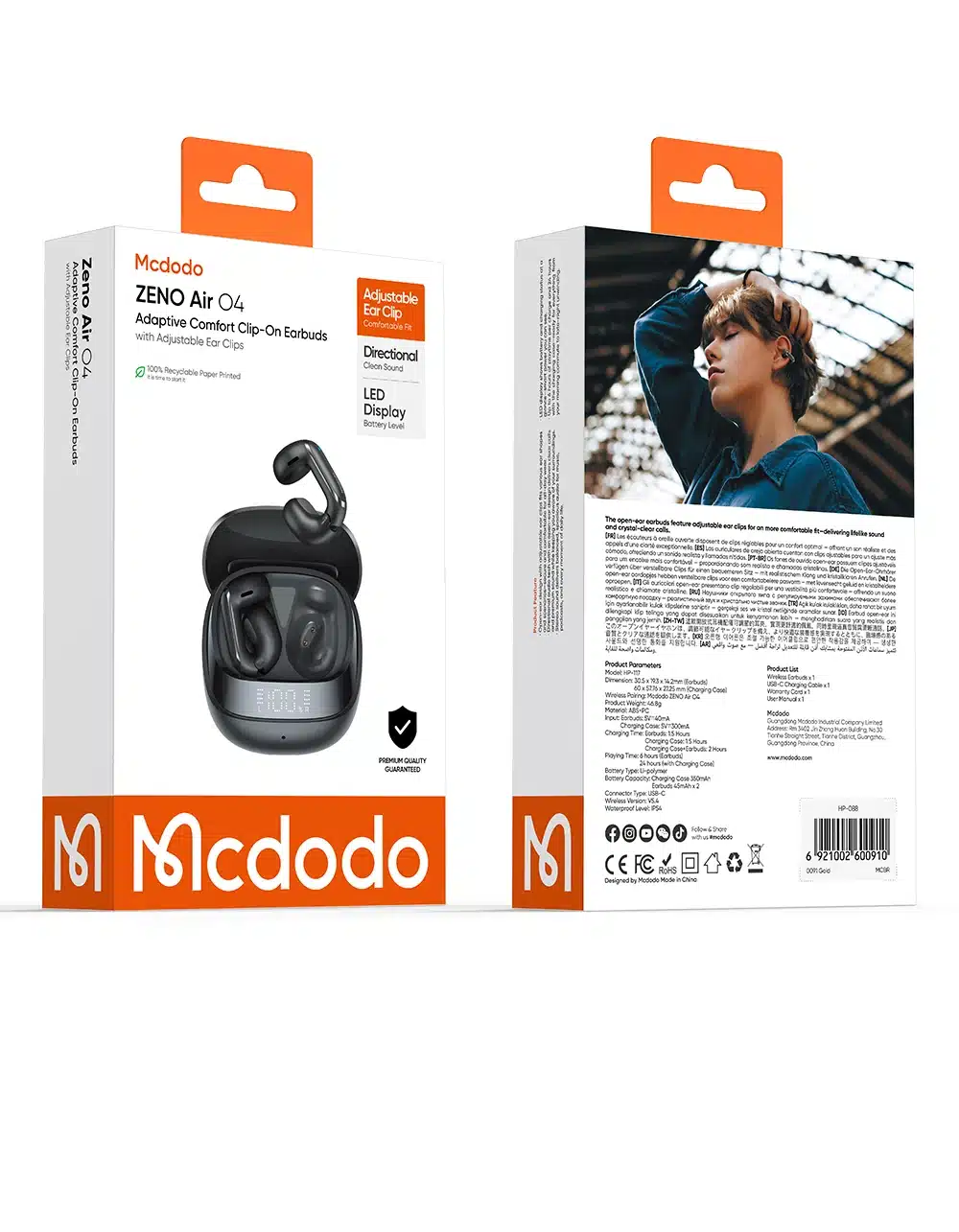 Auriculares Zeno Air O4 Clip-On Adaptáveis com Display LED Mcdodo