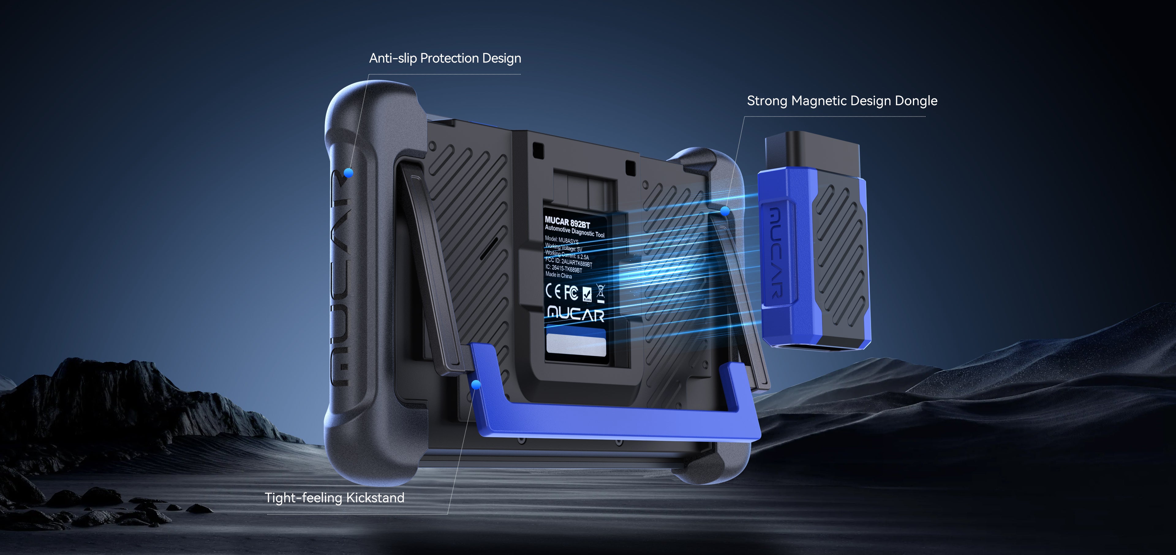 O MUCAR 892BT apresenta um novo design magnético que posiciona o dongle na parte traseira do dispositivo, tornando-o mais fino e confortável de segurar. Além disso, o suporte tátil firme e o design antiderrapante facilitam o uso em diversas situações.