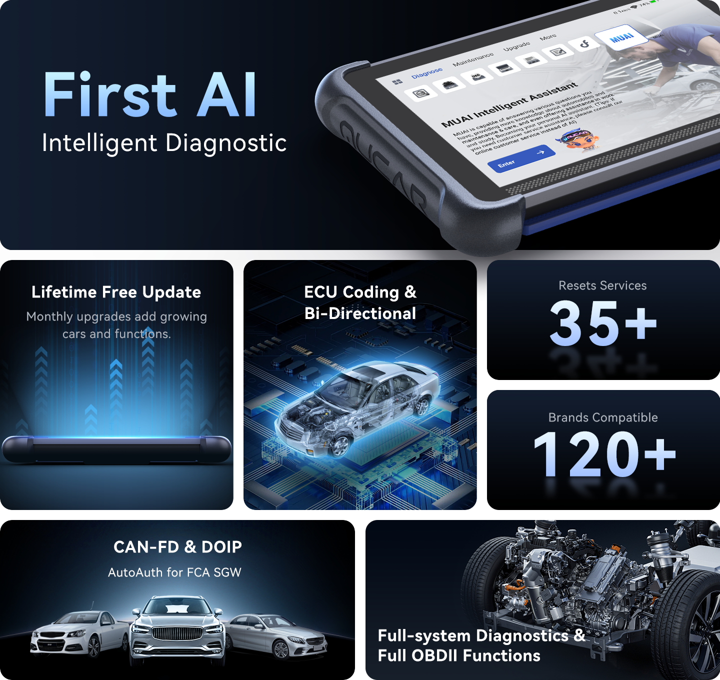 • Codificação de ECU, teste bidirecional e mais de 34 funções de manutenção: desde verificações de bateria até diagnósticos de motor, resolva tudo em um só lugar — aumente a eficiência em 200%