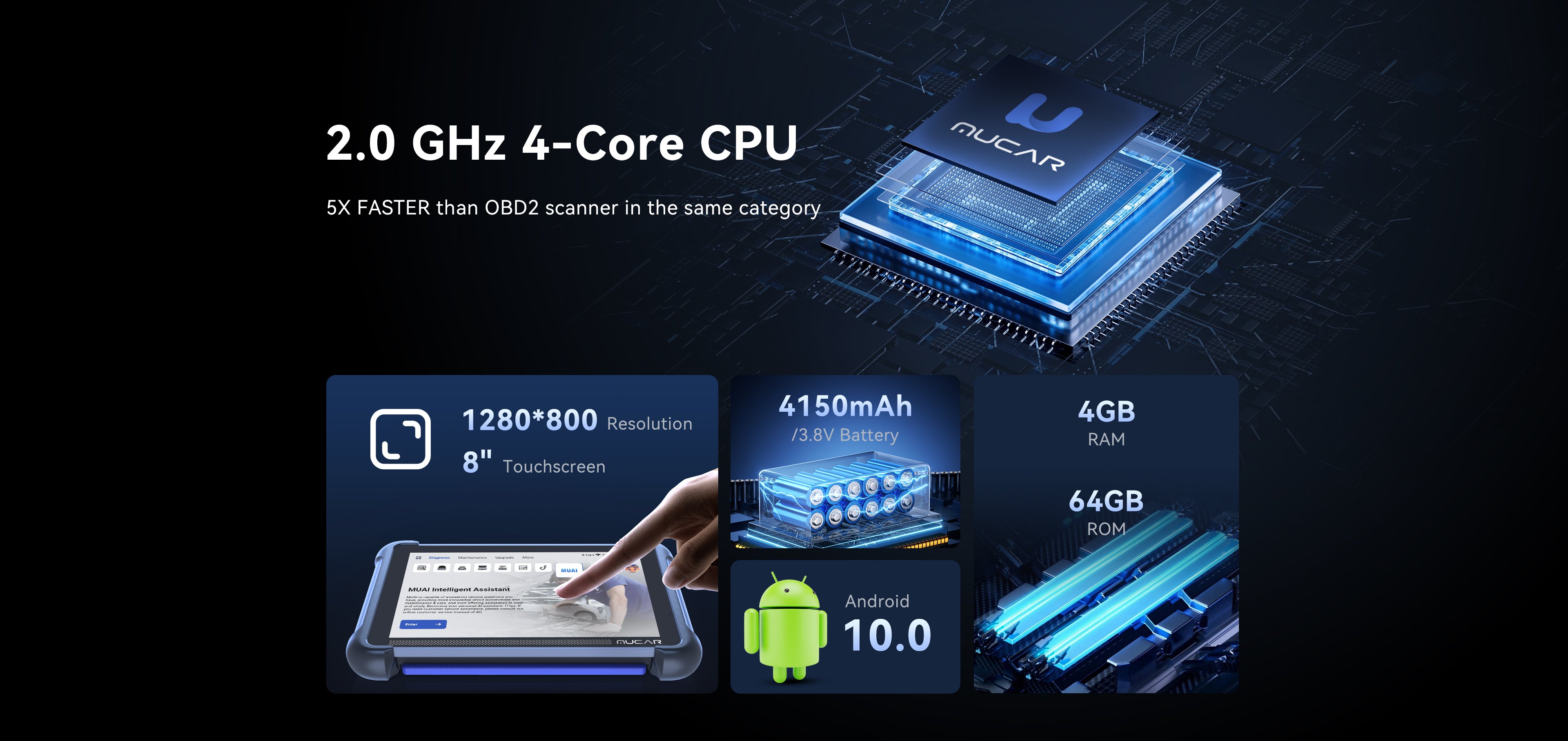 • Tela sensível ao toque de 8″ e atualização via Wi-Fi 2.4G/5G