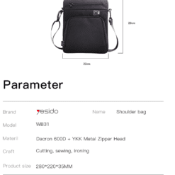 Bolsa transversal YESIDO WB31 em poliéster repelente à água, ideal para viagens, transporte no ombro e armazenamento de artigos esportivos.