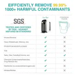 Com uma proporção de 4:1 puro para drenar, o SimPure Y7P-BW é o sistema RO de bancada com a maior taxa de utilização de água. A tecnologia de multifiltração de reciclagem do purificador de água de bancada pode economizar água em até 1500% e possui uma taxa de fluxo de distribuição mais rápida (418 GPD) que fornece água purificada em cerca de 15 segundos. Elimina a necessidade de água engarrafada, economizando muito dinheiro.