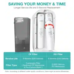 | Vida útil do filtro | 6 Meses (Filtro CF), 6 Meses (Filtro RO) |