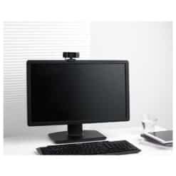 A câmera de computador 720P com lente de alta definição pode ajustar de forma inteligente sua taxa de quadros e resolução de acordo com a luz ambiente, fornecendo vídeo realista mesmo em condições de pouca iluminação.