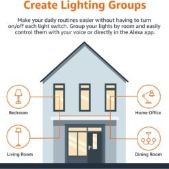 - CONTROLE DE GRUPO: Crie grupos no aplicativo Alexa para combinar luzes, permitindo controlar as luzes de cada cômodo ou de todas as luzes de sua casa com um único comando de voz ou via aplicativo. Quando chegar a hora de dormir, basta dizer “Alexa, desligue o quarto” OU use o aplicativo Alexa para desligar as luzes do quarto de uma só vez.