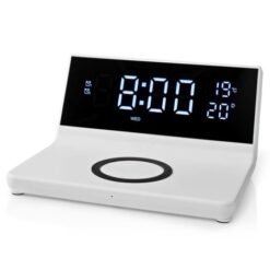 Relógio despertador com visor LCD e carregador sem fios 15W/230V branco