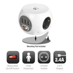 O EW3939 apresenta um design cúbico de poupança de energia e ocupa um espaço limitado da secretária. Todas as tomadas elétricas e portas USB são facilmente acessíveis. O suporte de montagem incluído garante que a tomada elétrica permanece no lugar.