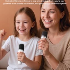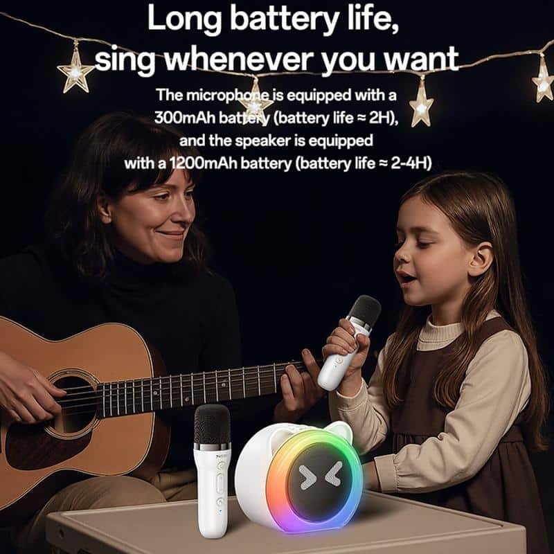 Coluna Bluetooth infantil 5.3 com 2 Microfones para Karaokê – Branca