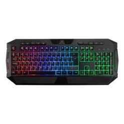 Teclado de formato completo, com teclas de atalho do sistema e multimédia. Dois modos de iluminação com intensidade e velocidade ajustáveis.