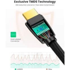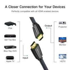 O cabo de vídeo UGREEN HDMI 4K UHD suporta High-Dynamic Range (HDR) para expandir a gama de cores e a taxa de contraste da sua TV, para que você possa desfrutar de precisão real, detalhes de tirar o fôlego e visuais HDR vibrantes.