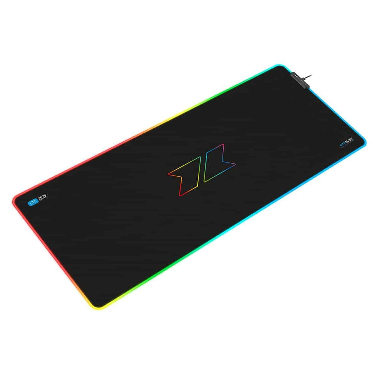 Tapete de rato desenvolvido para jogadores, destinado a proporcionar um deslize perfeito com qualquer tipo de rato. Proporciona uma aparência fantástica ao teu setup com os seus 3 efeitos de iluminação RGB e 6 cores estáticas. Dimensões: 900 x 350 x 3 mm.