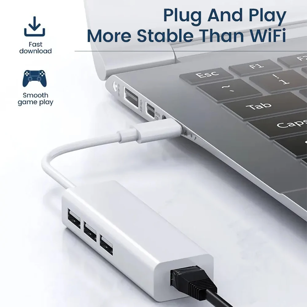 Adaptador Multi Splitter Dock USB 4 portas RJ45 100mbps |OTG| USB C