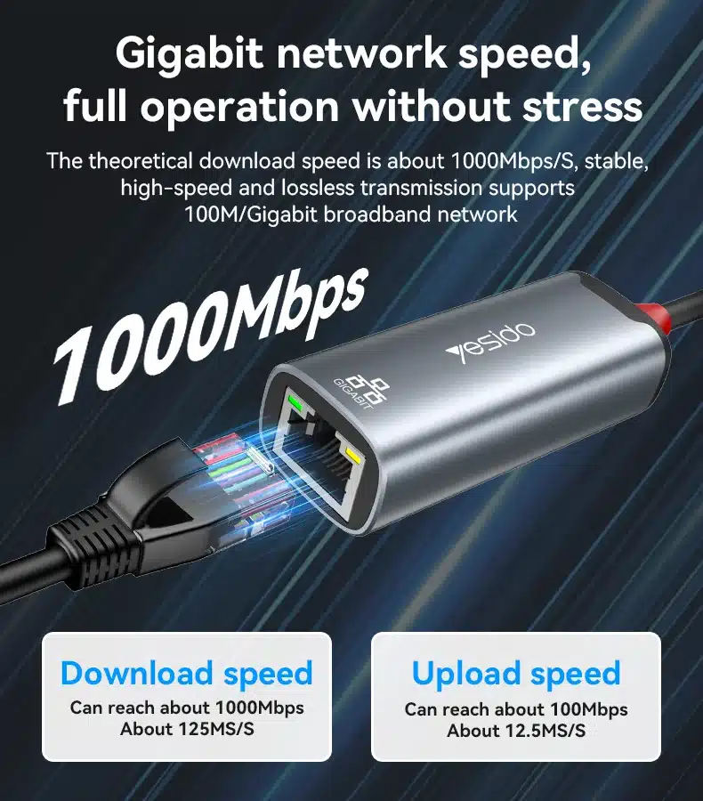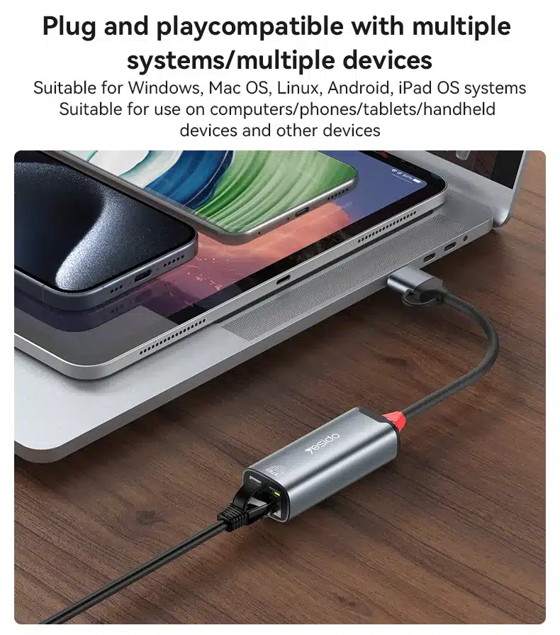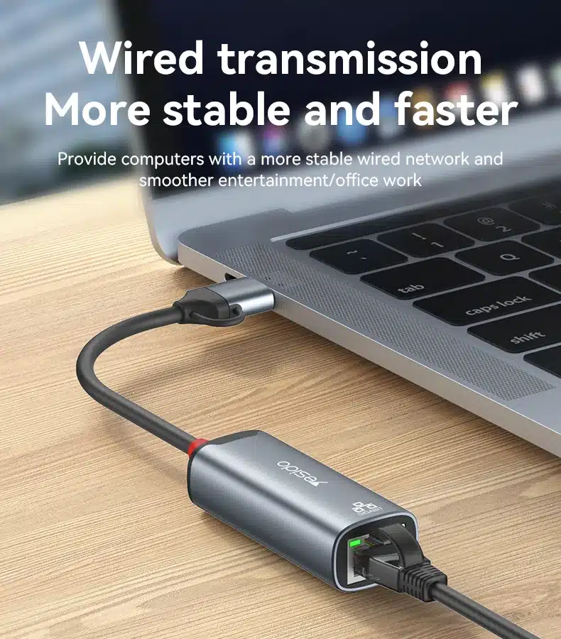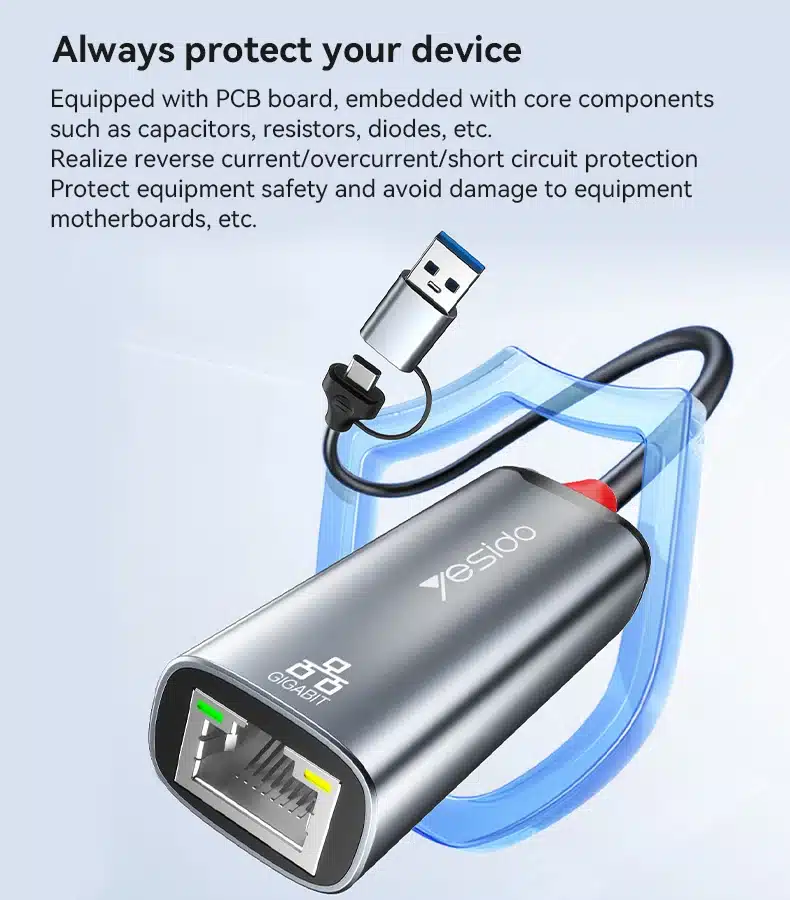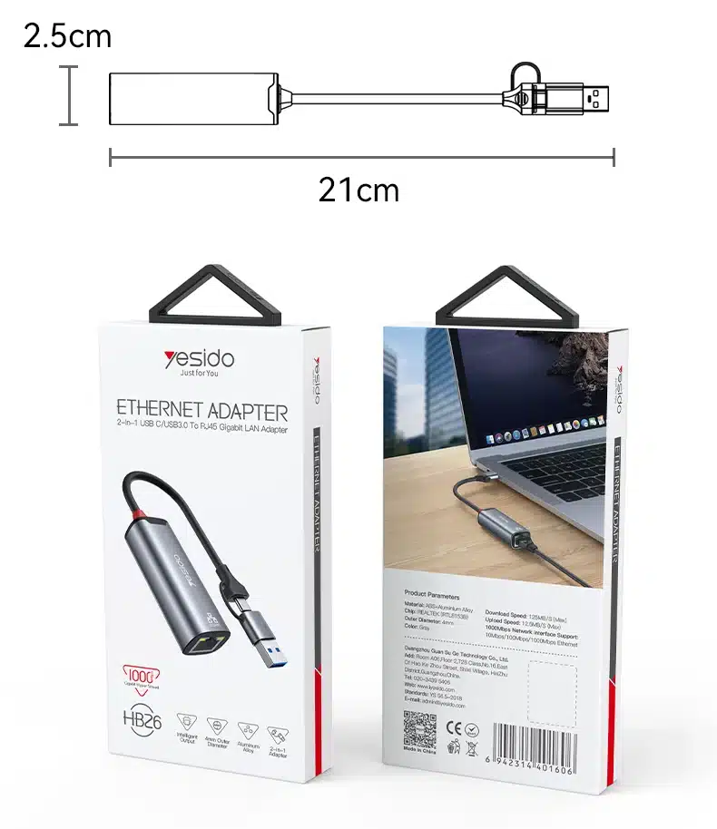 HB26 Yesido Liga de Alumínio 100Mbps Transmissão com Fio de Alta Velocidade Tipo C+USB Conversor Gigabit Ethernet 2 em 1.