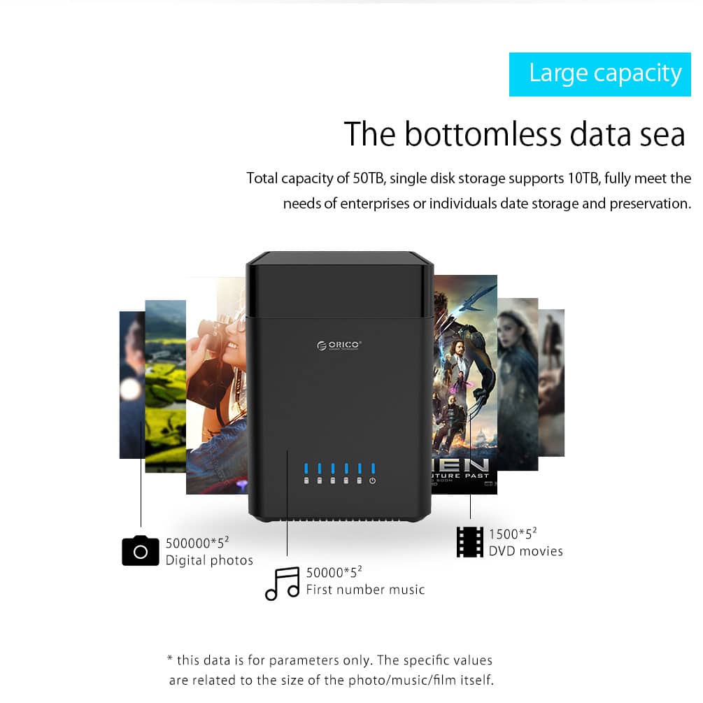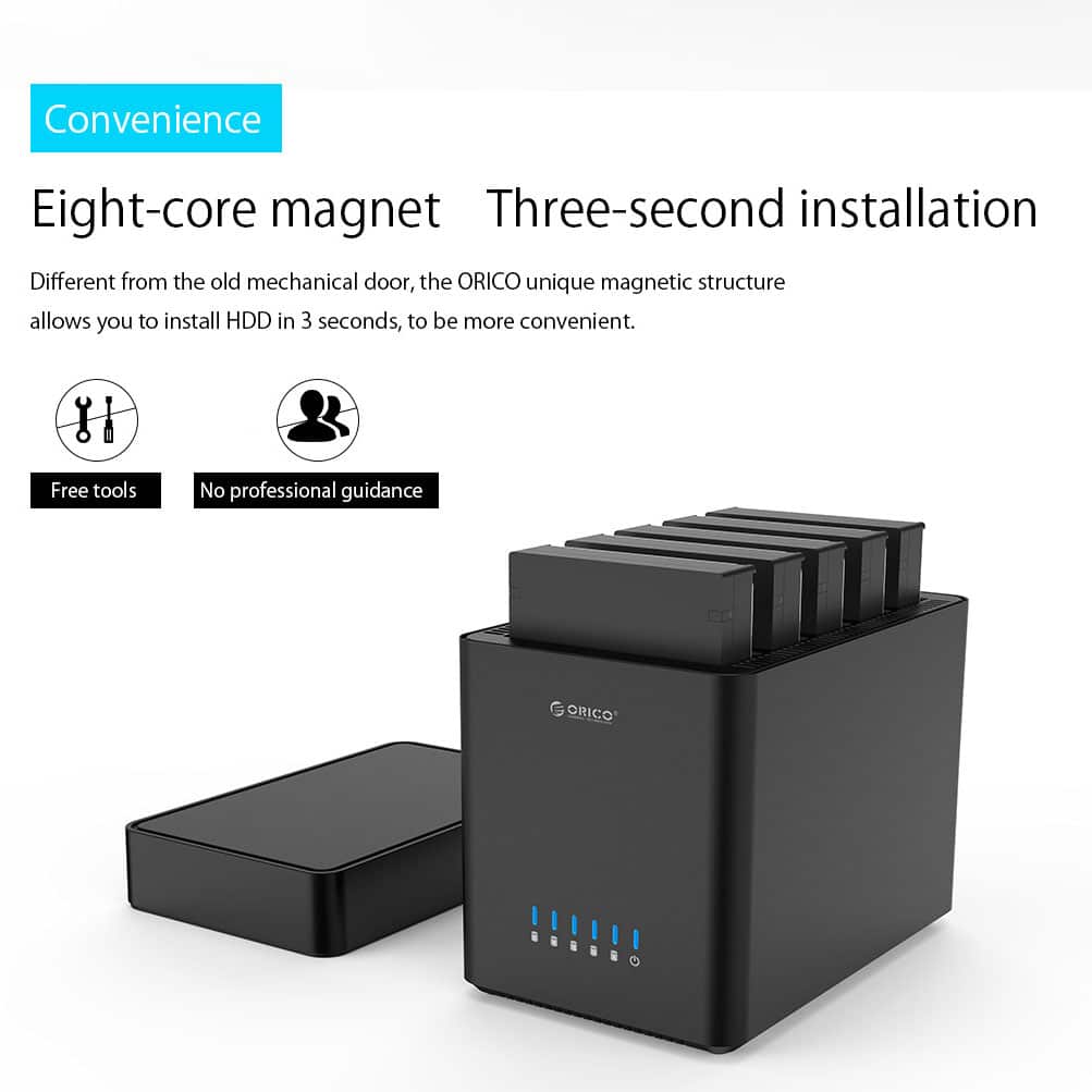 Caixa Externa 3.5″ Orico DS500U3 com fecho magnético, capacidade de 50TB, elevada taxa de transmissão de dados de 5Gbps, modo poupança de energia inteligente e compatibilidade com Windows, Mac e Linux