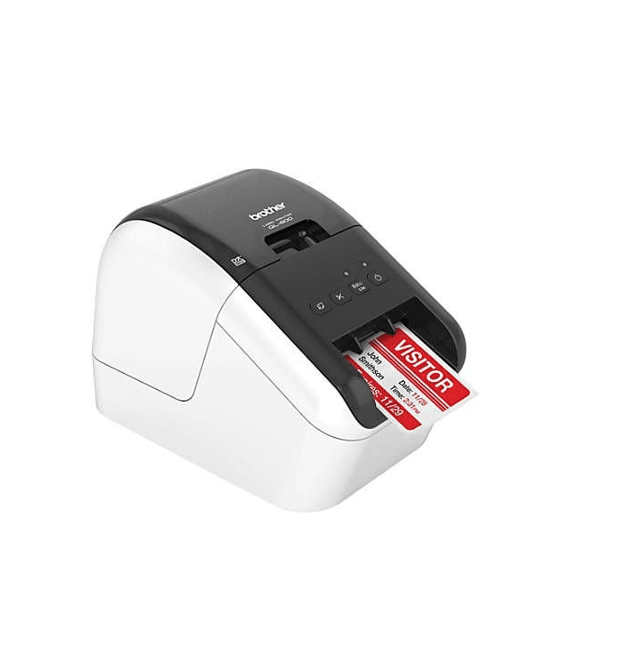 Brother QL-800. Tipo de fita: DK. Tecnologia de impressão: Acionamento térmico direto , Resolução Máxima: 300 x 600 DPI, Velocidade de impressão: 148 mm/seg. Tecnologia de conetividade: Com fios. Cor do produto: Preto, Cinzento – Brother