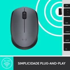 AGORA SEM FIOS. Com o rato sem fios Logitech® M170, escolha a fiabilidade de um rato com fios com a conveniência de um sem fios, e um alcance de 10 metros, graças à tecnologia sem fios Logitech Advanced de 2,4 GHz. Este rato acessível e simples funciona durante 12 meses* com uma única pilha AA e é compatível com Windows®, Mac e Chrome™.