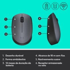 - Ligação Plug-and-Play: Ligue o rato sem fios à porta USB do seu computador com o receptor USB Logitech que proporciona uma ligação forte e estável