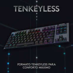 O G915 TKL é uma nova classe de teclado mecânico sem fios para Gaming com três seleções de interruptores GL de baixo perfil e ligação sem fios LIGHTSPEED de 1 ms de nível profissional. Capaz de oferecer 40 horas de jogo ininterruptas com um carregamento completo. Tecnologia avançada e teclas individualmente personalizáveis do LIGHTSYNC RGB para sincronizar a iluminação com qualquer conteúdo.