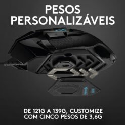 O G502 HERO inclui o nosso sensor óptico mais avançado para uma máxima precisão de rastreamento. Personaliza a iluminação RGB ou sincroniza-a com outros produtos Logitech G, configura perfis personalizados para os seus jogos, ajusta a sensibilidade de 200 até 25.600 PPP, ou posiciona cinco pesos de 3.6g para obter o equilíbrio e a sensação adequados.