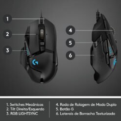 - Tecnologia LIGHTSYNC: A tecnologia Logitech G LIGHTSYNC proporciona uma iluminação RGB completamente personalizável que também pode sincronizar com o teu jogo (requer Logitech Gaming Software)