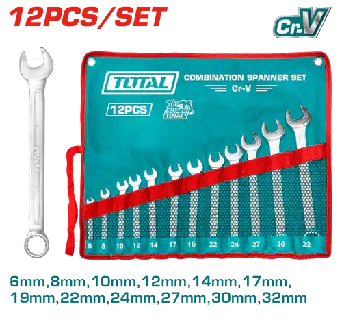 O conjunto é composto por 12 peças, incluindo uma chave inglesa serrilhada.