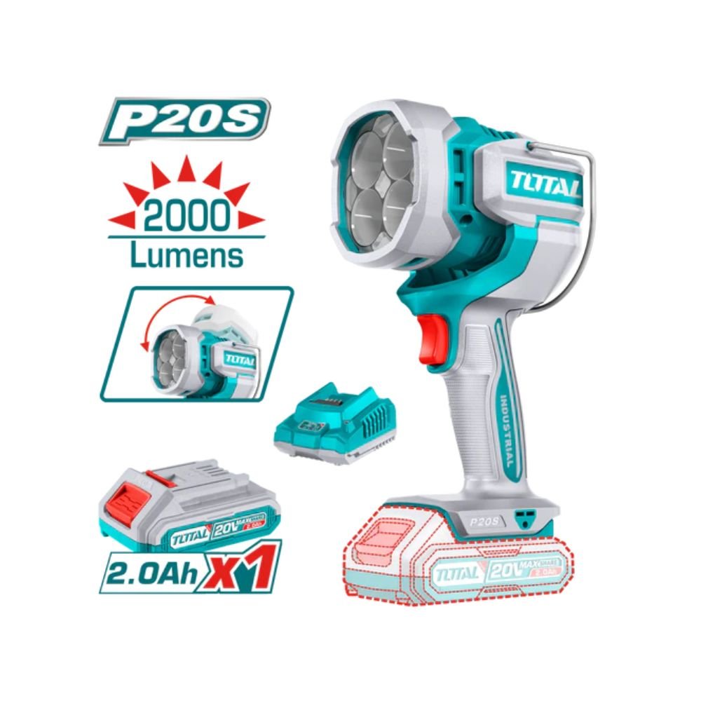 Lâmpada de trabalho LED sem fio Total 20V com bateria de íon-lítio de 2,0Ah e carregador TWLI20881