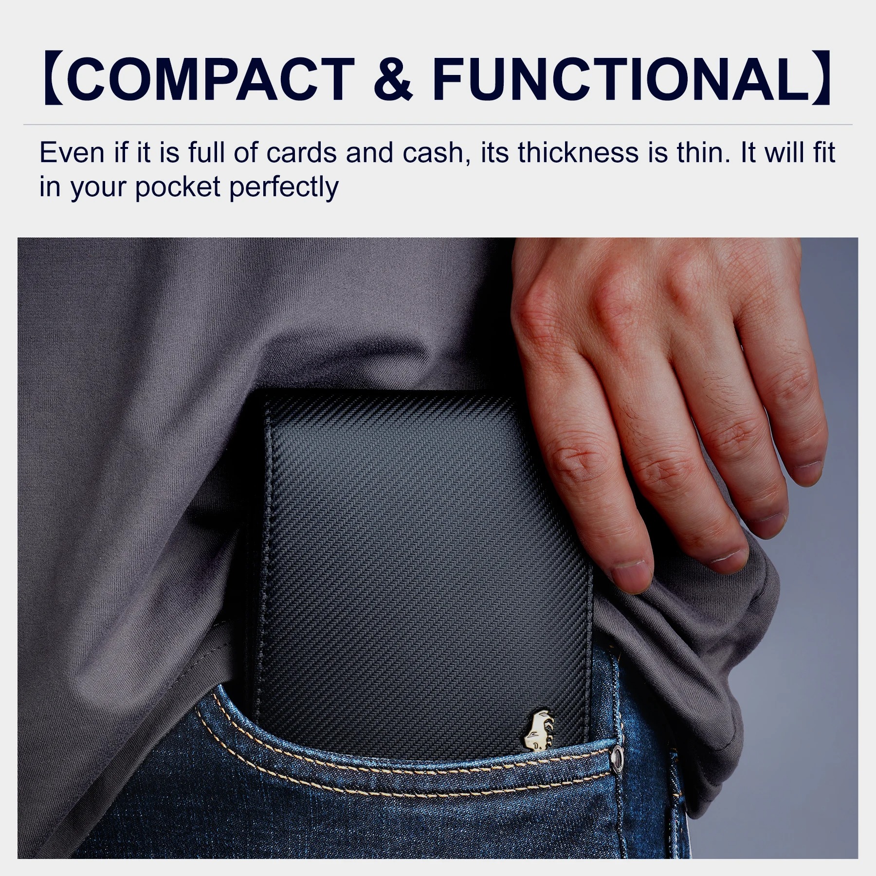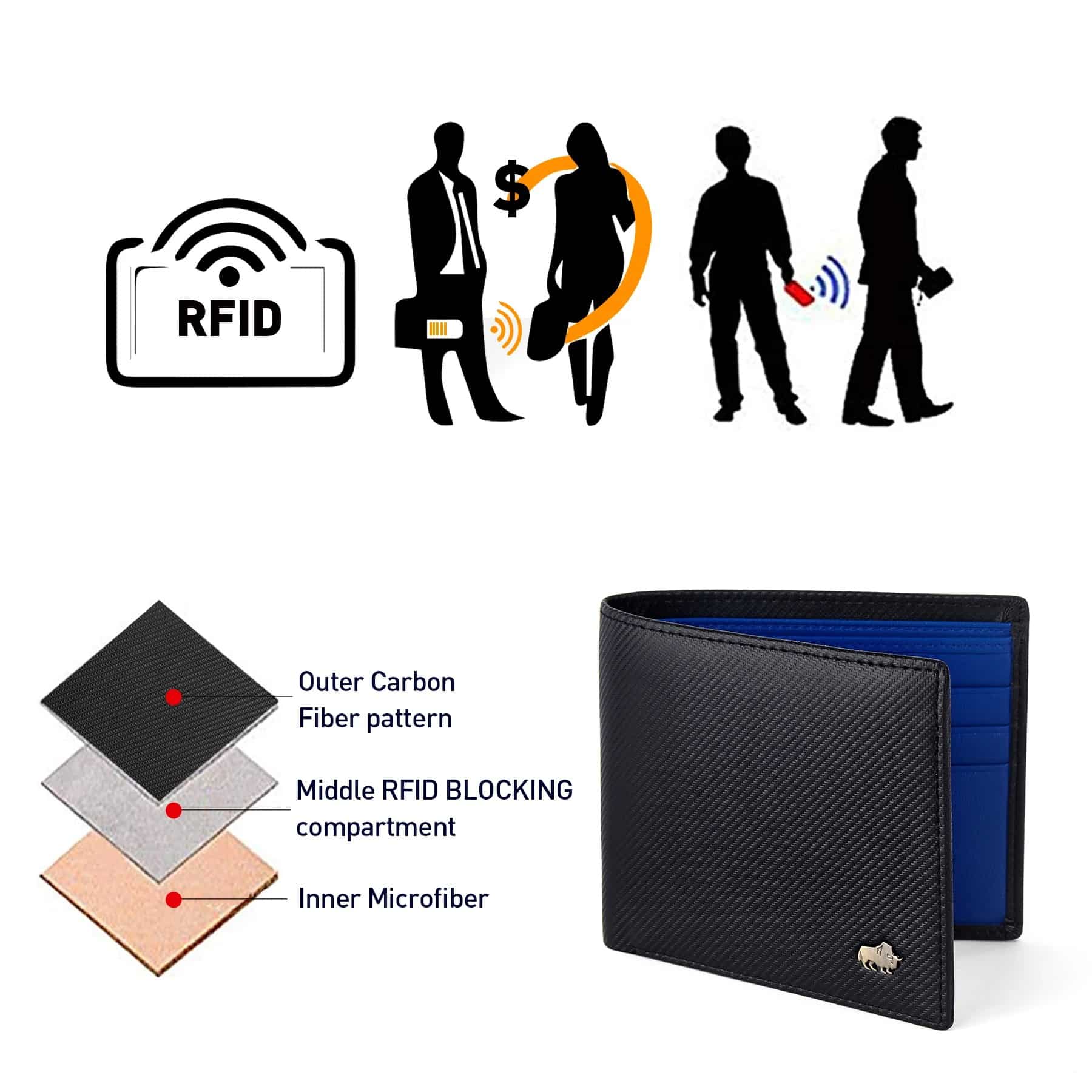 Carteira de bolso Masculina Bison Denim alta qualidade de fibra carbono – Black Blue