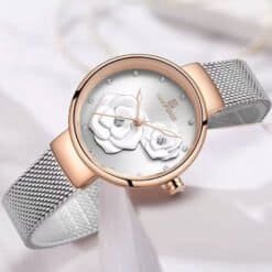 Relógio Feminino NAVIFORCE, Elegante e Sofisticado, com Pulseira de Aço Inoxidável, Movimento de Quartzo, Pulseira de Malha e Resistente à Água, Estilo Simples e Feminino. SOBRE A MARCA: Fundada em 2012 em Guangzhou, a NAVIFORCE se tornou uma das melhores fabricantes de relógios e uma marca popular reconhecida internacionalmente. Como o próprio nome sugere (uma combinação de “Navy” e “Force”), a NAVIFORCE almeja ser a força da Marinha no setor relojoeiro. “Personalidade e durabilidade” – a essência do design da NAVIFORCE – reflete a filosofia de design do fundador. Criar personalidade através da aparência e garantir durabilidade através da qualidade. Cada relógio NAVIFORCE demonstra a busca incessante por design exclusivo, acabamento impecável e uma experiência de usuário perfeita.