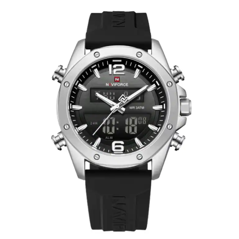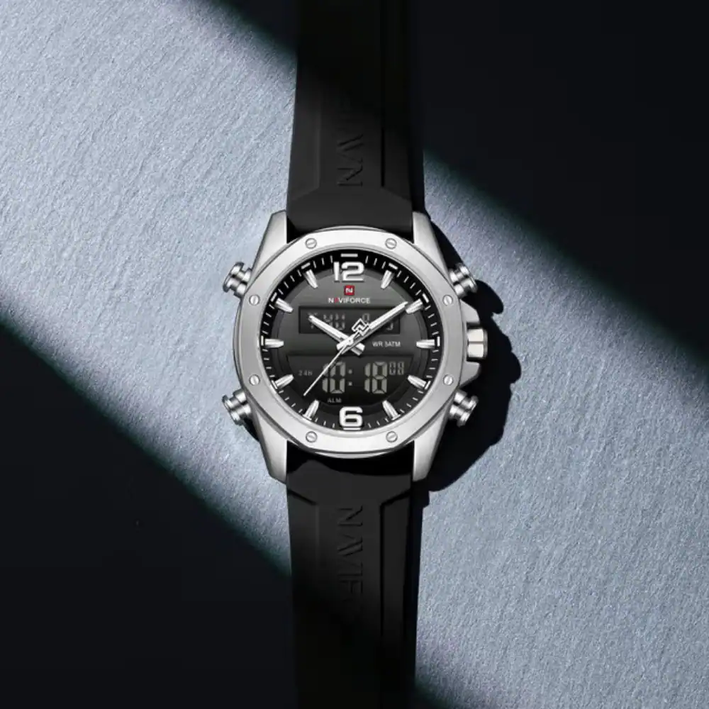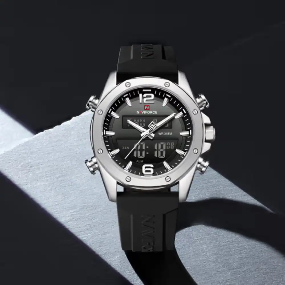 Relógio analógico-digital NAVIFORCE NF9234: combinação versátil de pulseira e mostrador.