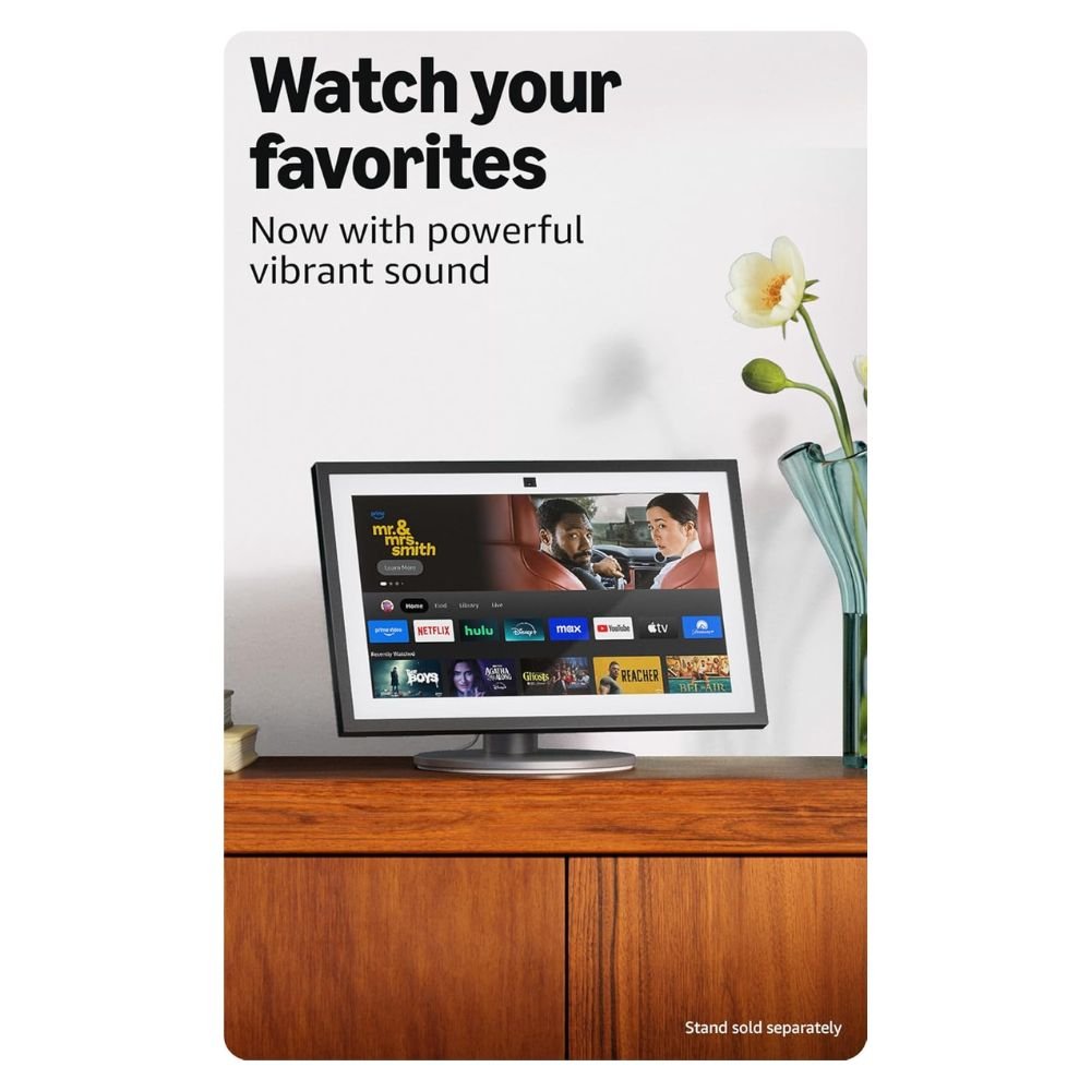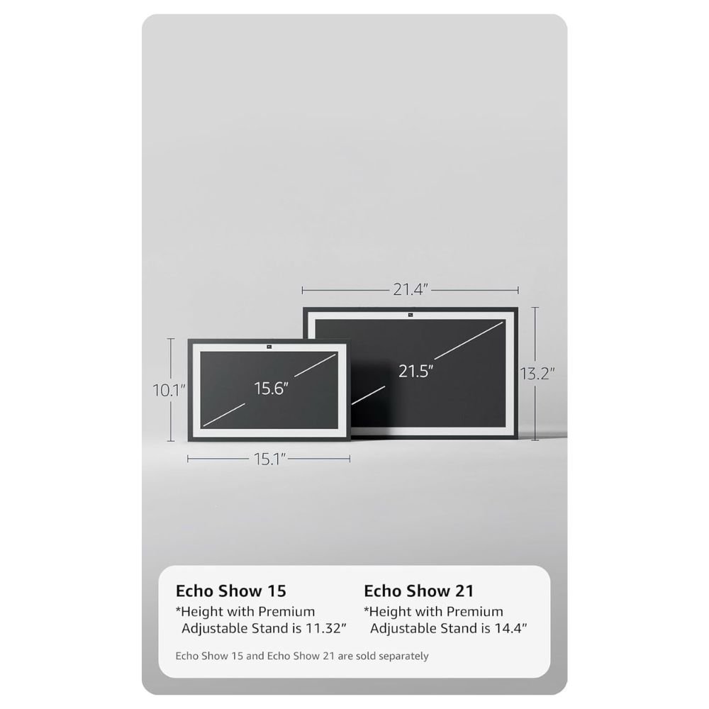 - CONHEÇA O NOVO ECHO SHOW 15 – Uma tela inteligente Full HD (1080p) de 15,6″ com um design incrível, perfeita para sua cozinha e pronta para mostrar ainda mais. Use widgets personalizáveis para organizar seu dia, assista aos seus programas favoritos com o Fire TV e desfrute de um som potente e vibrante e faça videochamadas com imagem natural, zoom de 3,3x e amplo campo de visão.