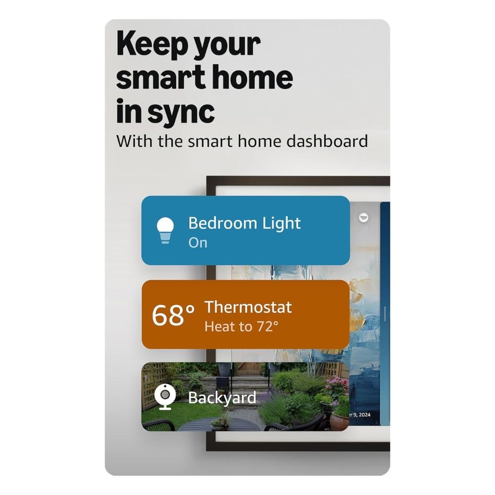 - CENTRAL DE CONTROLE DA CASA INTELIGENTE – Controle dispositivos inteligentes com sua voz ou com alguns toques usando o painel de controle da casa inteligente. Acenda facilmente todas as luzes da sua sala de estar de uma só vez ou verifique as transmissões ao vivo das câmeras para ver o que está acontecendo ao redor da sua casa.