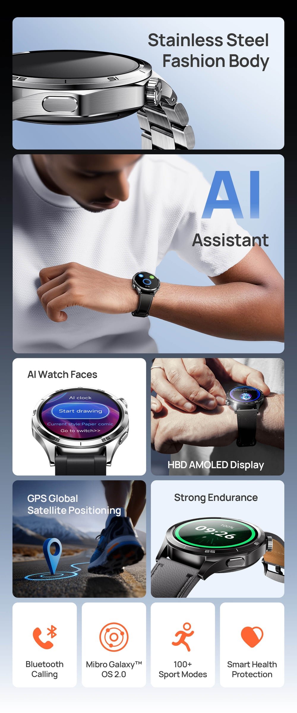 Descubra o Mibro Watch GT, um smartwatch projetado para os entusiastas de atividades ao ar livre e fitness. Com um design robusto e elegante, sua caixa de titânio de 46 mm e tela AMOLED de 1,43 polegadas oferecem durabilidade e visibilidade excepcionais em qualquer condição.