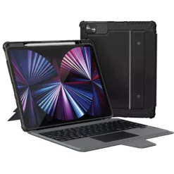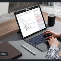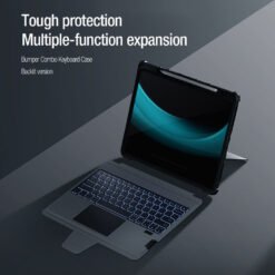 Bumper Combo Keyboard Case(versão retroiluminada)é uma capa de teclado multifuncional especialmente para iPad Pro e iPad Air, apresentando um suporte ajustável, um teclado removível e um trackpad que o tornam conveniente para digitar, visualizar, ler e esboçar. Também permite que você aproveite uma experiência de operação flexível. A capa antiqueda adotada de nível militar envolve firmemente as bordas do iPad, oferecendo proteção total. O design patenteado da capa deslizante da câmera protege com eficiência a câmera do iPad contra abrasão e arranhões. O tecido PU conciso e delicado combina com a estética do iPad, uma integração perfeita de arte e tecnologia.