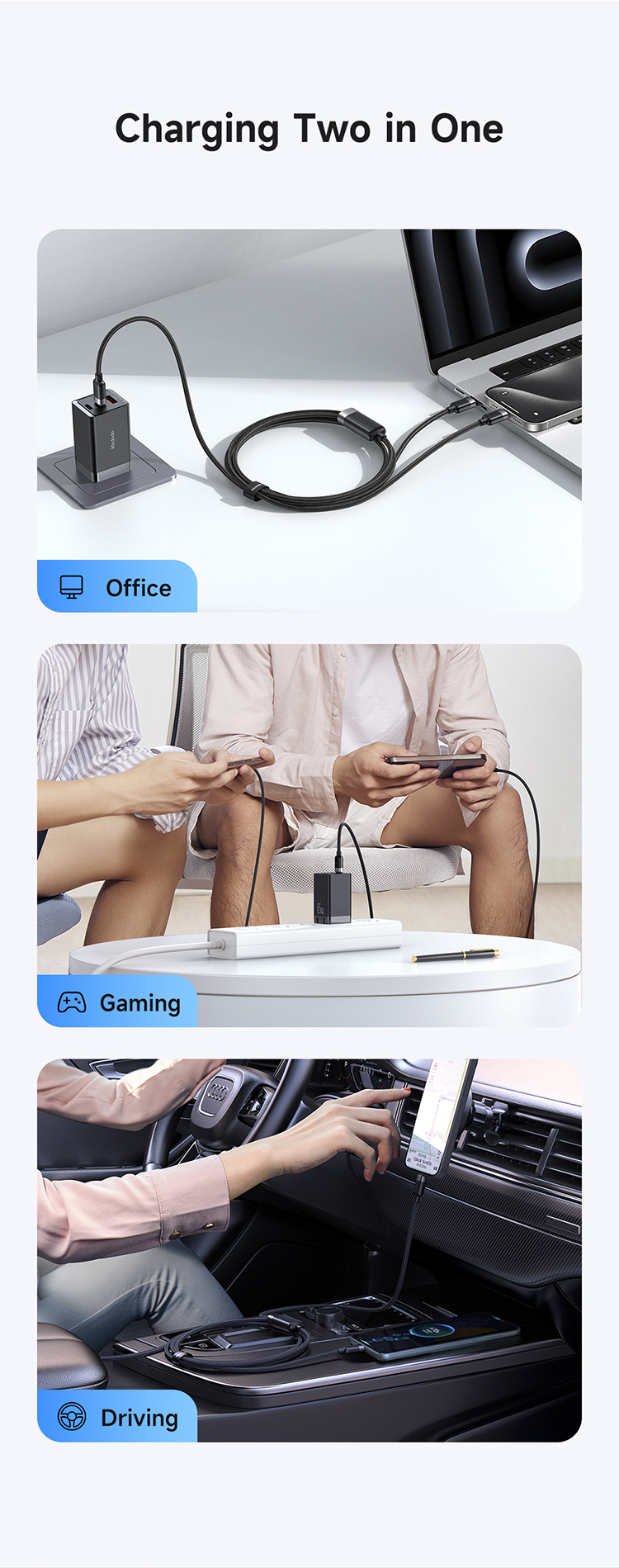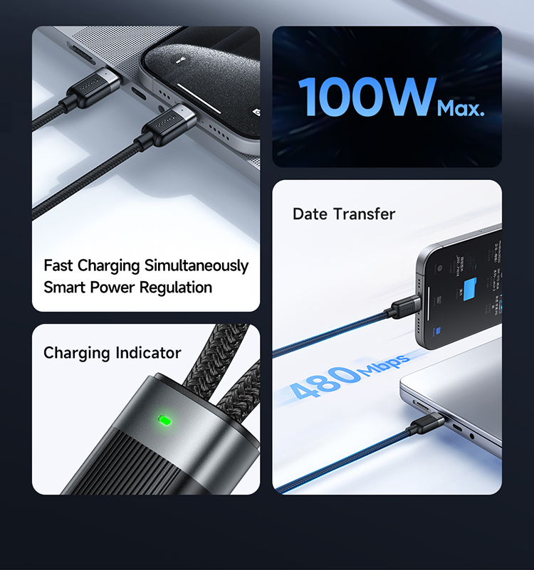 MCDODO 2 EM 1 USB-C PARA DUPLO USB-C 100 W CABO INTELIGENTE 1,5 M