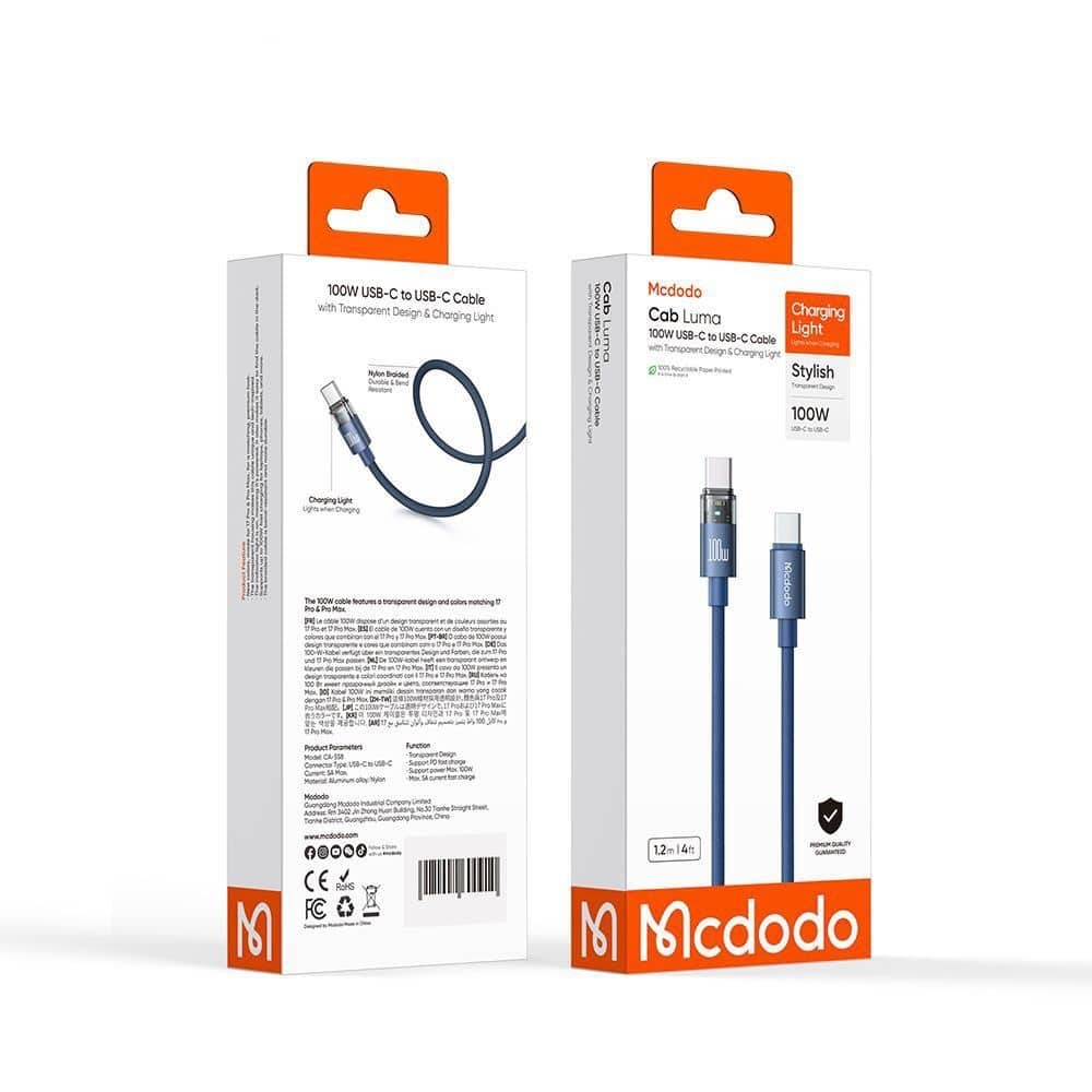 Cabo de carregamento USB-C para USB-C Mcdodo Cab Luma 100W 100% Compativel com iPhone