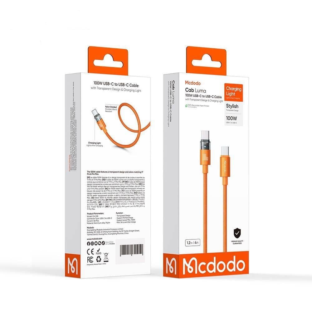 Cabo de carregamento USB-C para USB-C Mcdodo Cab Luma 100W 100% Compativel com iPhone