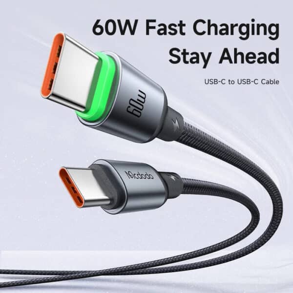 O cabo de dados Mcdodo CA-687 Luma 60W USB-C para USB-C foi projetado para usuários que desejam carregamento rápido, transferência de dados estável e uma experiência visual premium em um cabo durável. Construído para suportar dispositivos USB-C modernos, este cabo é ideal para smartphones, tablets, laptops, power banks e outros dispositivos com entrada Type-C que exigem carregamento confiável de alta potência e durabilidade para o uso diário.