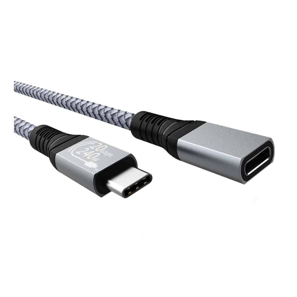 Extensão USB C 3.2 de 20Gbps, Cabo USBC 3.2 Gen2 20G 240W Ultra 4K Video, Este cabo USB 3.2 Macho para Fêmea permite conectar seu laptop com porta USB-C (Modo Alternativo DP suportado) a monitores externos com porta USB-C, você precisa conectar um cabo USB 3.2 Macho/Macho externo para sua conexão ao laptop ou displays, o cabo M/M USB-C 3.2 não está incluído no pacote