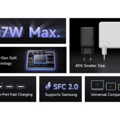 Dispositivo único – Obtenha a potência máxima de 67 W via USB-C1 para laptops, tablets ou celulares com carregamento rápido.