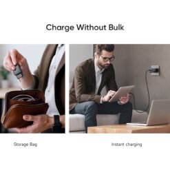 Dois dispositivos – Compartilhe 45 W na porta USB-C1 + 20 W na porta USB-C2, ou 45 W na porta USB-C1 + 18 W na porta USB-A.