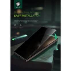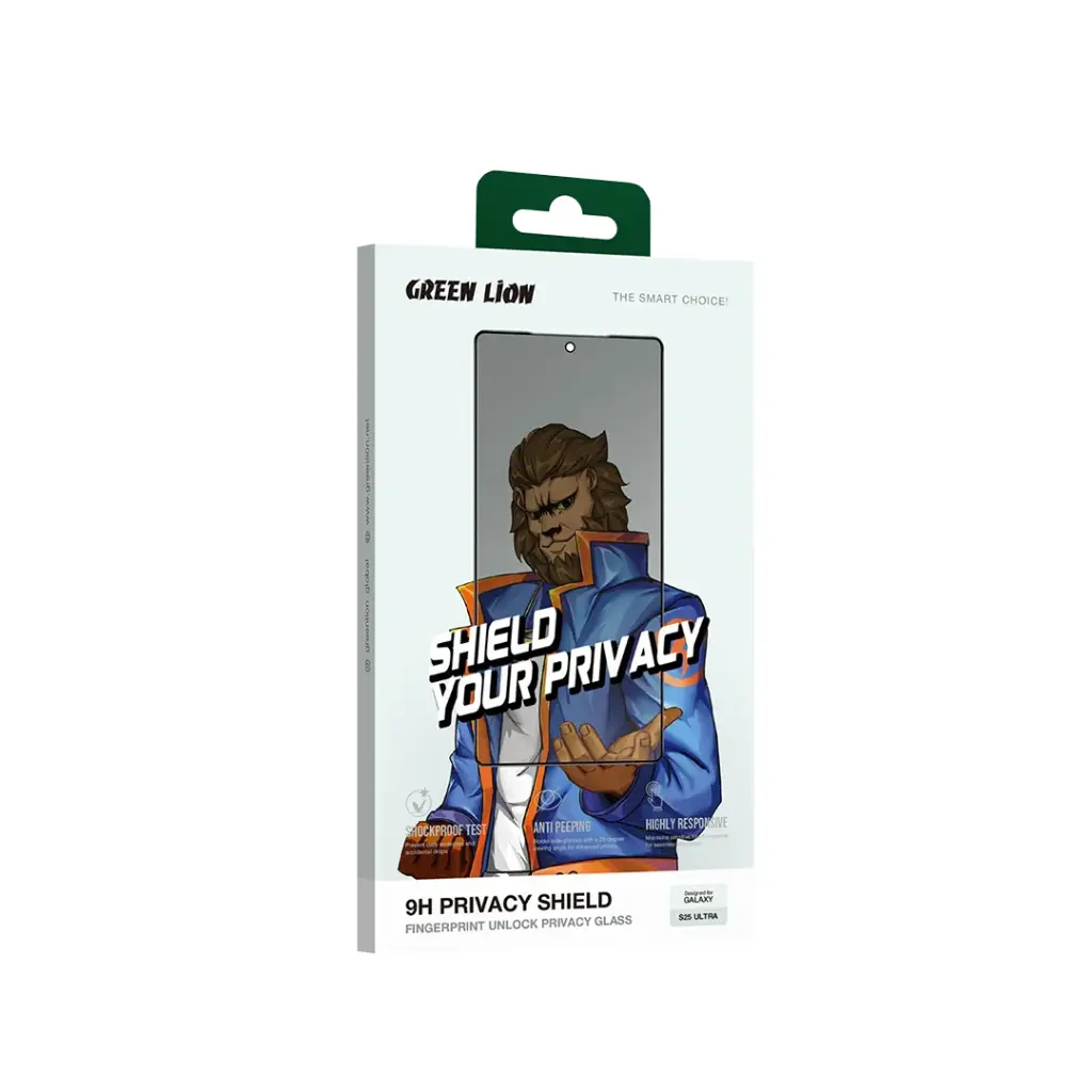 Obtenha a máxima privacidade e proteção de tela possível com a película protetora Green Lion 9H Privacy Shield. Esta película de vidro temperado avançada foi projetada especificamente para o S25 Ultra, com classificação 9H, o que a coloca no topo da lista em termos de resistência a arranhões e quedas. O filtro de privacidade aprimorado, que limita os ângulos de visão, garante uma visibilidade cristalina. O revestimento oleofóbico facilita o uso, evitando marcas de dedos e manchas. A tecnologia de reconhecimento de impressões digitais desbloqueia seu dispositivo mesmo com a película. A instalação é simples e rápida. Atualize a proteção do seu S25 Ultra com a Green Lion Privacy Shield e obtenha máxima proteção e tranquilidade.