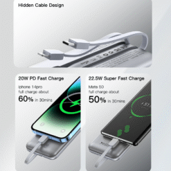 Carregador portátil com carregamento rápido USB 22,5 W e PD 20 W para celular